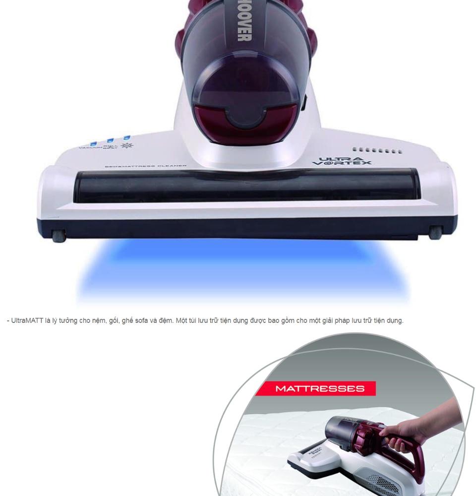 Giới thiệu Máy Hút Bụi Cầm Tay Không Dây Hoover MBC 500UV, Máy Hút Bụi Giường Nệm, Ga Gối, Ghế Sofa, Công Suất 2000W, Nhập Đức
