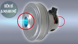 Cả hai bên của động cơ máy hút bụi đều được phủ lá chắn cao su để giữ bụi cát ở bên ngoài, không để lọt vào bên trong gây ảnh hưởng đến độ bền của động cơ.
