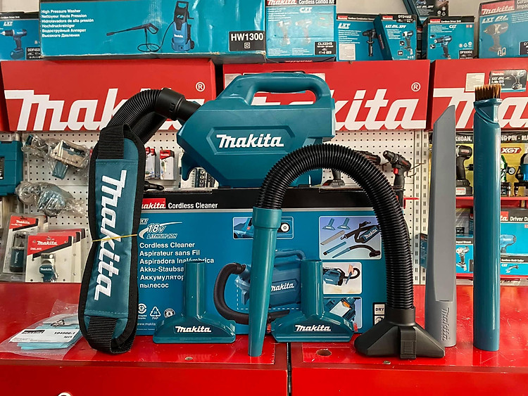 Trong hộp có: Máy hút bụi Makita DCL184Z, Đầu hút sàn 120, đầu hút ghế 120, đầu hút khe 330, chổi xoay 360, phụ kiện thổi, dây đeo vai, bộ túi bụi giấy, túi bụi vải, miếng đệm gài đầu hút. Máy không bao gồm pin, sạc.