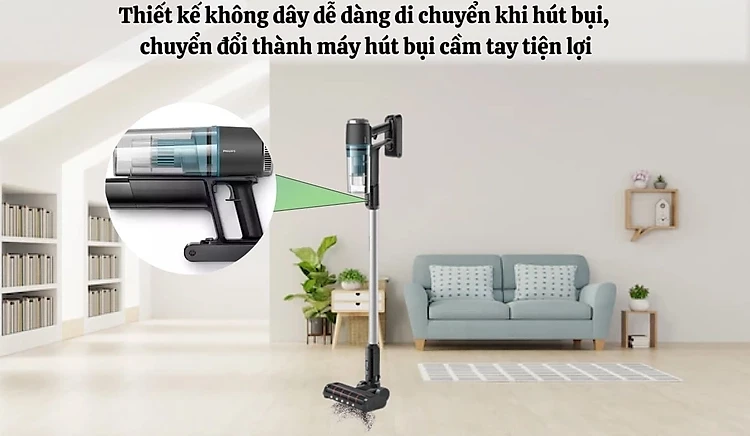 Máy hút bụi không dây Philips XC3031/01 thiết kế không dây, gọn nhẹ, có thể tháo rời ống nối cho bạn tiện cầm nắm và dọn dẹp nhiều khu vực khác nhau. Dung tích chứa bụi 0.25 lít tiện tháo rời vệ sinh. Màu sắc trang nhã tô điểm cho không gian nhà bạn thêm phần sang trọng và hiện đại.