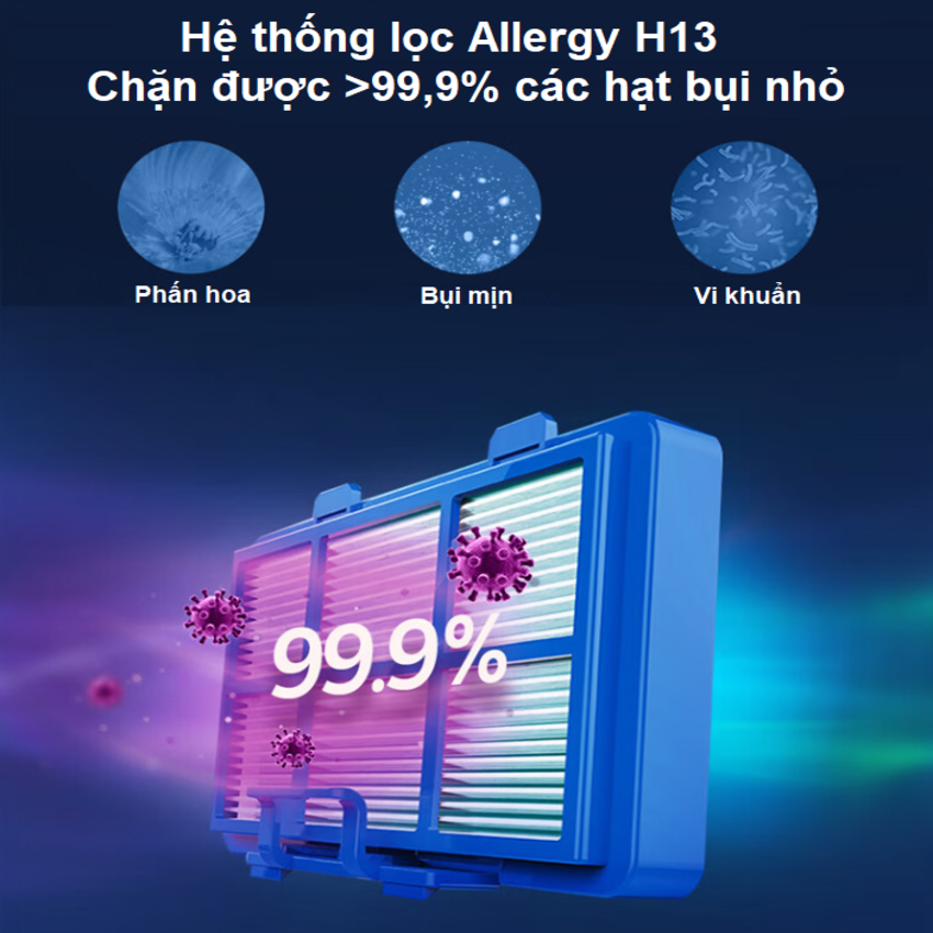 Hệ thống lọc Allergy H13 chặn được >99,9% các hạt bụi nhỏ