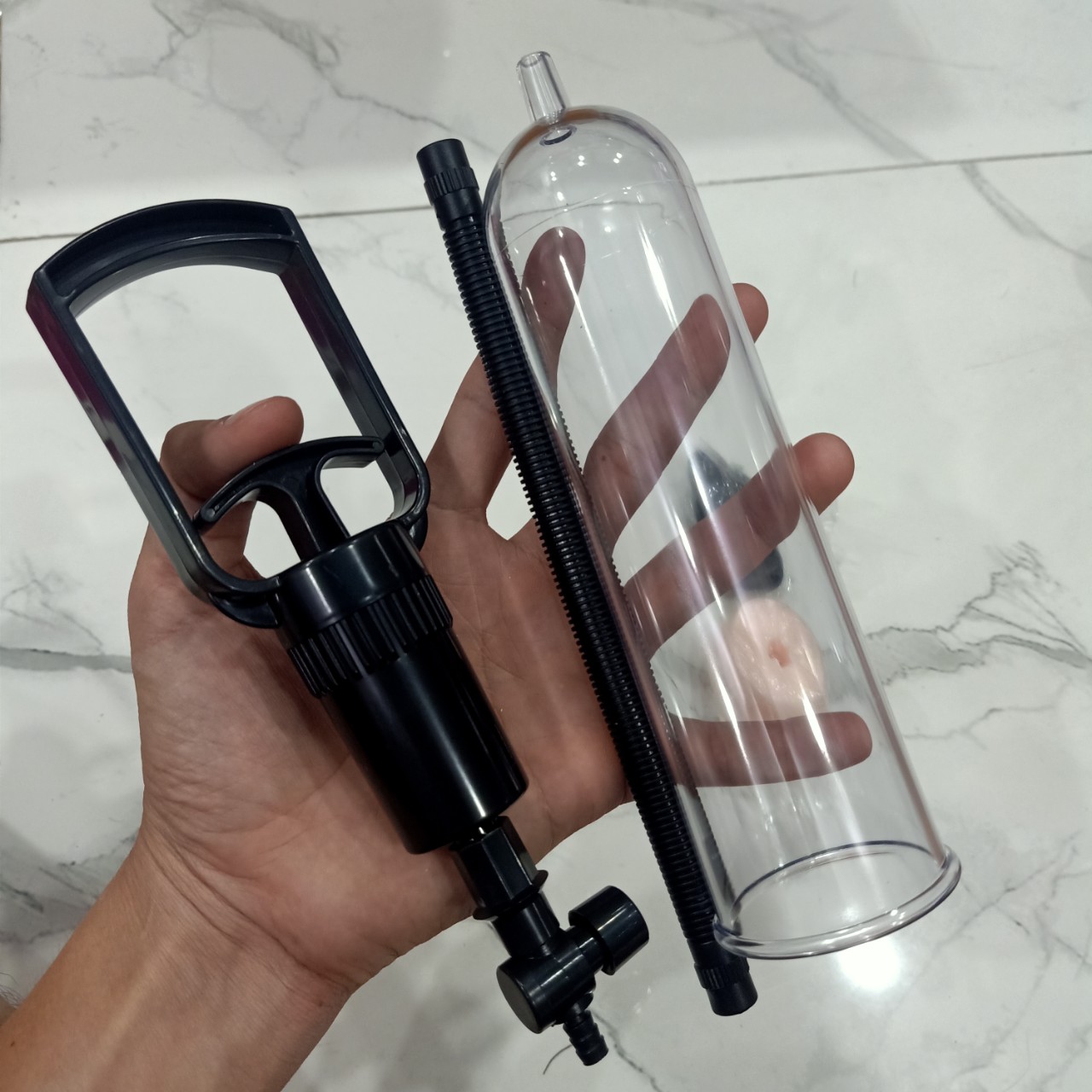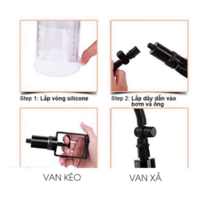 Sản phẩm gồm: ống hút chân không, 3 vòng đệm, 1 đầu phụ Hồng, tay kéo hơi, van, ống dẫn hơi
