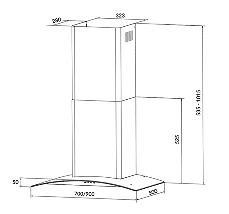 EH-70K26S là dòng máy hút mùi gắn tường thiết kế dạng kính cong. Thân máy inox kết hợp với kính màu dày 6mm tạo lên vẽ đẹp sang trọng hiện đại cho không gian bếp.