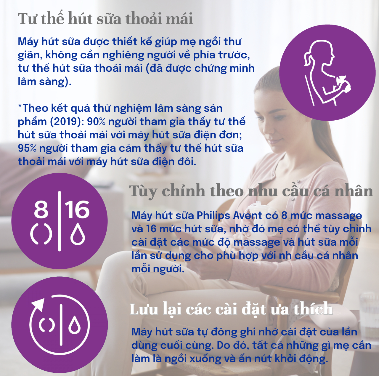 Hút sữa nhẹ nhàng và thoải mái mà không cần phải nghiêng người về phía trước