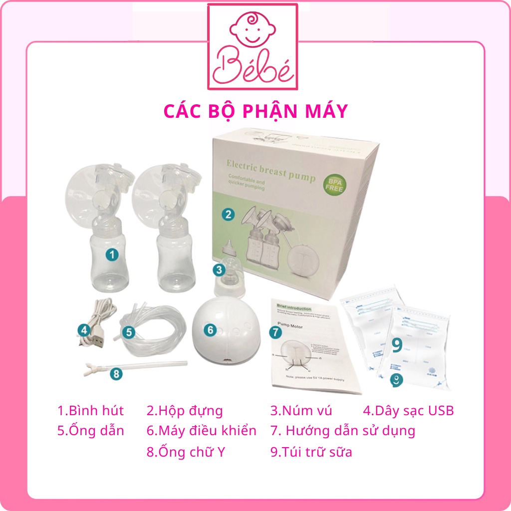 Tại sao Mẹ nên lựa chọn máy hút sữa điện đôi DearEvery tại Shop? - Máy được thiết kế chống tràn chảy ngược giúp ngăn sữa mẹ hút vào motor gây mất vệ sinh và cháy motor. - Hút sữa được nhiều hơn, tiết kiệm 1 nửa thời gian hút sữa nhờ thiết kế đôi tiện lợi - Máy hút sữa điện có 2 chức năng: mát xa và hút sữa, mỗi chức năng có 9 cấp độ điều chỉnh linh hoạt, giúp Mẹ chủ động lựa chọn được mức độ phù hợp với mình - Máy hút sữa điện hút được kiệt sữa mà vẫn mang lại cho Mẹ cảm giác thoải mái, dễ chịu bởi máy hút sữa có phần phếu chụp núm vú được làm từ silicone mềm mại + chế độ mát xa => tạo tiếp xúc mềm mại, êm ái với bầu sữa Mẹ - Thiết kế nhỏ gọn, dễ tháo rời vệ sinh, tiện bảo quản, dễ mang theo - Toàn bộ vật liệu cấu thành máy hút sữa được làm từ vật liệu an toàn, không chưa BPA - Chất gây ung thư => Đảm bảo an toàn cho cả Mẹ và Bé, dễ dàng làm sạch - Máy hút sữa có phần phễu chụp được làm từ silicone mềm mại kết hợp với chế độ mát xa của máy tạo tiếp xúc thoải mái, êm ái với bầu sữa Mẹ => kích thích tiết sữa tốt hơn, tự nhiên. - Máy hút sữa điện đôi có cơ chế vận hành nhẹ nhàng, êm ái để đảm bảo giấc ngủ của bé không bị quấy rối.