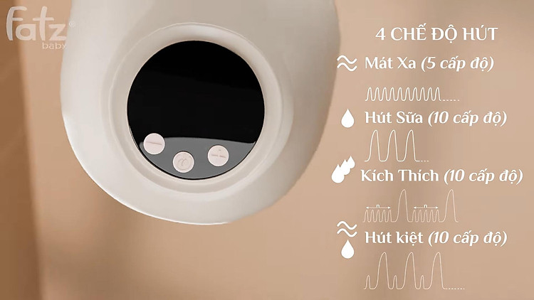 Bơm mạnh và êm với 4 chế độ hút: Chế độ Massage (5 cấp độ)/ Chế độ hút sữa (10 cấp độ)/ Chế độ kích thích (10 cấp độ)/ Chế độ hút kiệt (10 cấp độ).