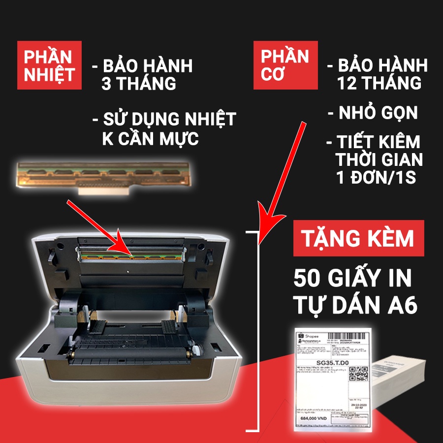 👇Dưới đây là các lý do mà chủ shop chuyển hết sang dùng máy này mà ko phải máy in thông thường : ✅ Khả năng "độc đáo" IN KHÔNG CẦN MỰC giúp các chủ shop TIẾT KIỆM được 1 đống tiền mua mực hàng tháng ✅ Đặc biệt in xong dán ngay không cần băng dính giúp bạn tiết kiệm được khối tiền mua băng dính ✅ Tốc độ in 1 giây 1 đơn giúp in cả nghìn đơn 1 ngày chỉ trong 15 phút ✅ In được theo toàn bộ 4 sàn : Shopee, và các bên GHTK, GHN, Viettel Post, J&T, EMS, KiotViet, Sapo, Nhanh, Suno, Haravan, Máy bán hàng, TPOS...in từ Word, Excel, Bartender ✅ In từ khổ A6 đến các loại tem nhỏ, tem mini code, Barcode, QR code, tem phụ, tem nhỏ ✅ Dán lên thùng giấy, cốc , chai lọ, KHÔNG PHAI MỰC kể cả trong nước mưa, cồn, dầu ✅ Sử dụng ổn định thì 4 năm mới phải thay màng in 1 lần nếu có 100 đơn/ngày (4 năm bạn mất bao nhiêu tiền mua mực in và băng dính?) ✅ Màng in bên bỉ, tuổi thọ 100.000 tờ = 30km giấy mới phải thay ✅ In được qua mạng LAN chia sẻ máy in ✅ Hàng chính hãng đầy đủ hóa đơn giấy tờ - xuất full VAT 100% ✅ Hướng dẫn cài đặt dễ dàng qua Ultraview chỉ trong 1 phút ✅ Thiết kế nhỏ gọn chỉ bằng 1 gang tay, tiết kiệm diện tích, tiết kiệm điện năng ✅ Giúp nhân viên đóng gói, in đơn nhàn nhã cả ngày ------------------------------------------ *Chi tiết sản phẩm : - Kích thước: 207x102x112mm - Loại máy: Máy in nhiệt dính sẵn - Cỡ giấy: Từ A6 trở xuống - Độ phân giải: 203 dpi - Tốc độ: 50-127mm/s - Trọng lượng: 1.5kg - Kết nối: USB - Xuất xứ Trung Quốc - Bảo hành màng in 3 tháng - phần cứng máy in 12 tháng *Lưu ý: -Máy in đơn hàng SP46 của Shoptida chỉ sử dụng được trên các máy tính hệ Điều hành Windows và MacOs ( Với hệ điều hành macOS chưa hỗ trợ full tính năng ). Máy không sử dụng được với điện thoại hoặc máy tính bảng - Máy in chưa bao gồm khay đựng giấy -------------------------------------------- *Cam kết với khách hàng: - Sản phẩm 100% giống mô tả - Đảm bảo chất lượng, dịch vụ tốt nhất, hàng được giao từ 1-5 ngày kể từ ngày đặt hàng - Đổi trả theo CHÍNH SÁCH RIÊNG CỦA SHOPTIDA 1. Điều kiện áp dụng (trong vòng 14 ngày kể từ khi nhận sản phẩm): - Hàng hoá vẫn còn mới, chưa qua sử dụng - Hàng hóa hư hỏng do vận chuyển hoặc do nhà sản xuất 2. Trường hợp được chấp nhận: - Hàng không đúng chủng loại, mẫu mã như quý khách đặt hàng - Không đủ số lượng, không đủ bộ như trong đơn hàng - Tình trạng bên ngoài bị ảnh hưởng như rách bao bì, bong tróc, bể vỡ… 3. Trường hợp không đủ điều kiện áp dụng chính sách: - Quá 14 ngày kể từ khi Quý khách nhận hàng - Gửi lại hàng không đúng mẫu mã, không phải hàng của Máy in đơn hàng Shoptida SP46 - Đặt nhầm sản phẩm, chủng loại, không thích, không hợp,...