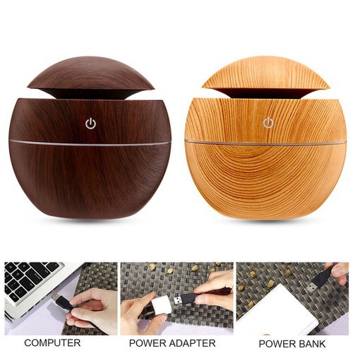 Máy khuếch tán tinh dầu - Máy tạo độ ẩm bình vân gỗ led 7 màu thoáng mát tiện dụng