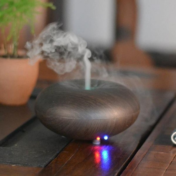 Máy khuếch tán tinh dầu phun sương siêu âm cao cấp vân gỗ 150ml, đèn led đổi 7 màu, tự ngắt an toàn, bảo hành 3 tháng