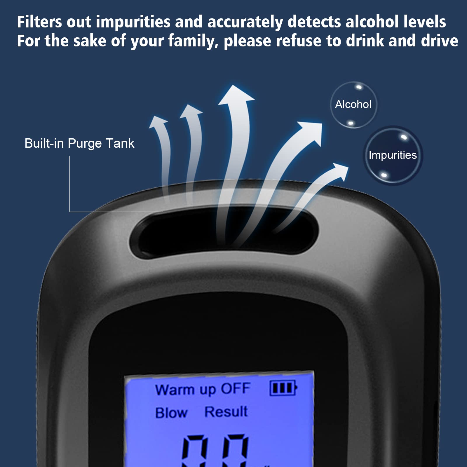 ĐƯỢC TÍCH HỢP TRONG THÙNG THANH LỌC: Máy đo nồng độ cồn trong hơi thở di động được tích hợp trong thùng tinh chế, lọc tạp chất, phát hiện chính xác nồng độ cồn.