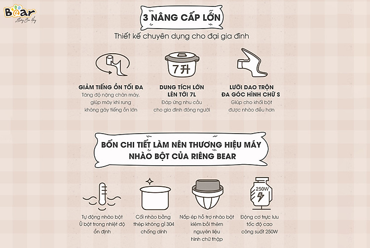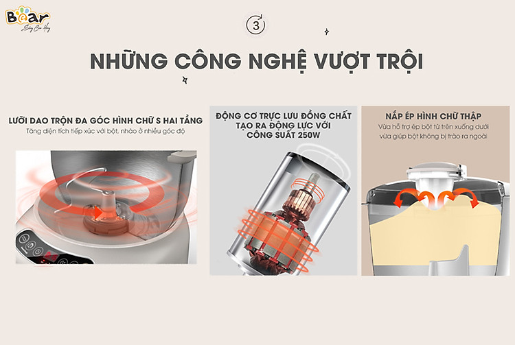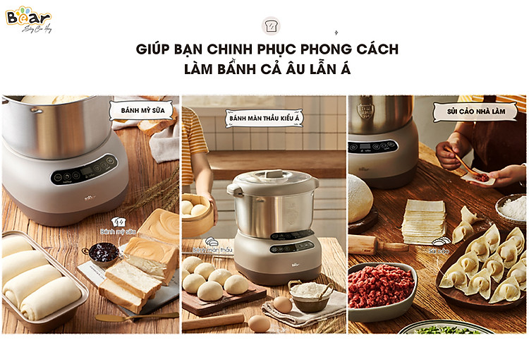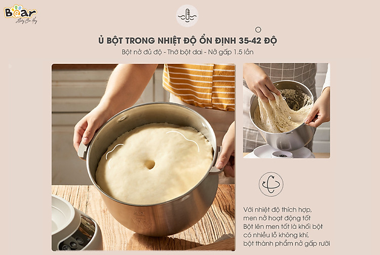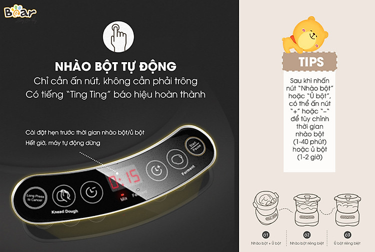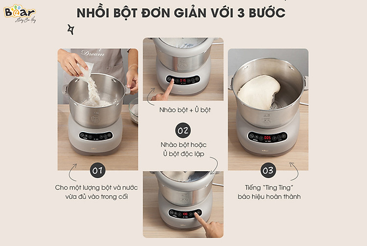Bạn dễ dàng sử dụng máy tộn bột 7L Bear chỉ với 5 thao tác dưới đây: