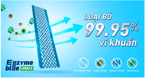 | Kháng khuẩn khử mùi | Phin lọc Enzyme Blue kết hợp PM2.5 |