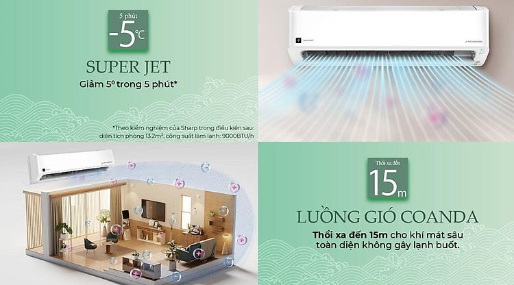- Công nghệ Super Jet tạo không gian mát mẻ tức thì.