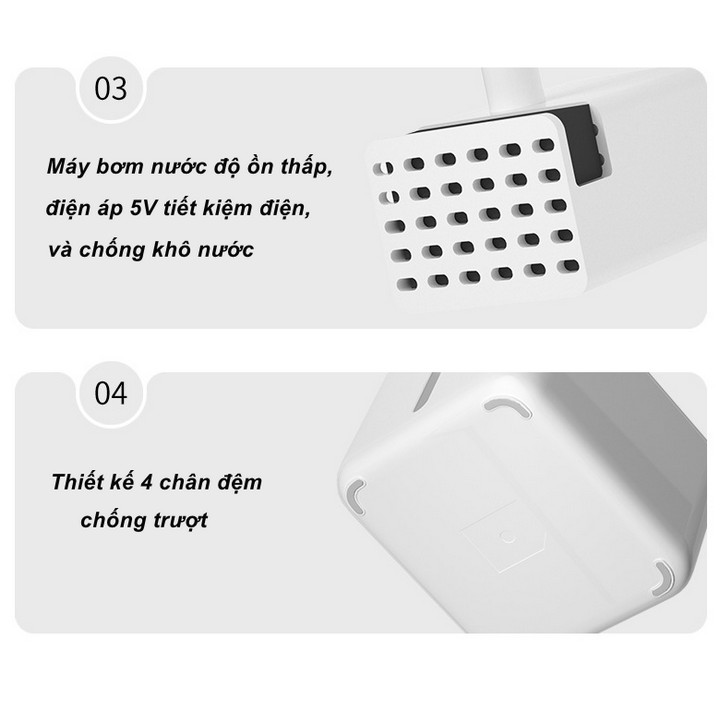 - Máy bơm nước điện áp 5V độ ồn thấp giúp tiết kiệm điện và chống khô nước