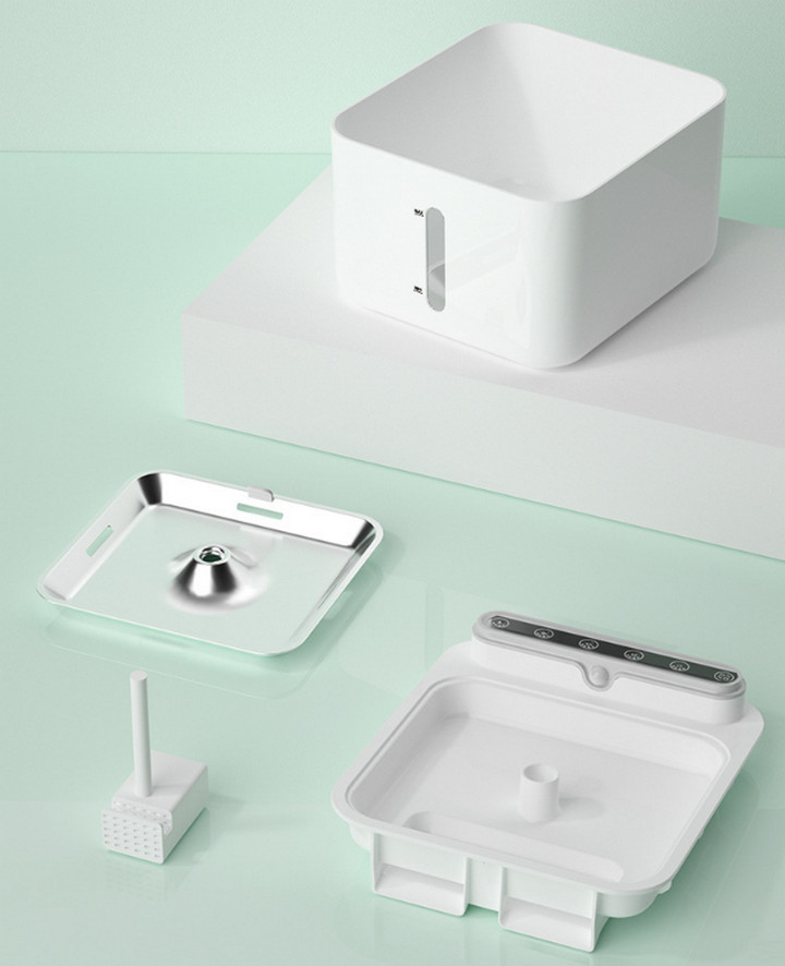 - Thiết kế máy lấy nước tự cho mèo tiện lợi.
