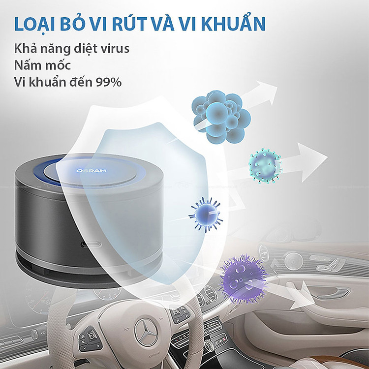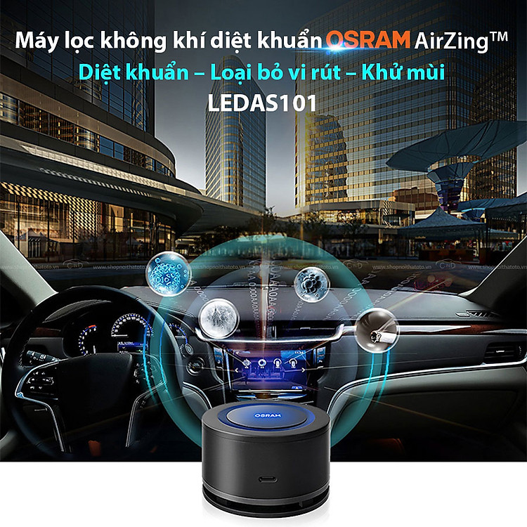 Máy lọc không khí diệt khuẩn OSRAM AirZing LEDAS101 là sản phẩm lọc khí cực kỳ hiệu quả với khả năng loại bỏ virus và vi khuẩn trên xe đến 99%, bộ lọc Titanium Dioxide với những đi-ốt phát quang và lọc than hoạt tính có thể khử mùi Formaldehyde đến 90%.