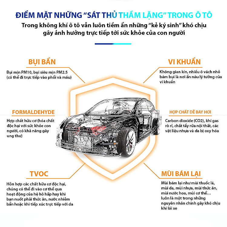 - Sản phẩm khử mùi diệt khuẩn không thực sự hiệu quả, không thể diệt hết vi khuẩn hay Benzen trong không gian xe.
