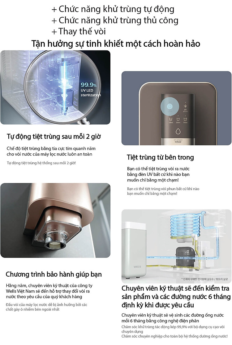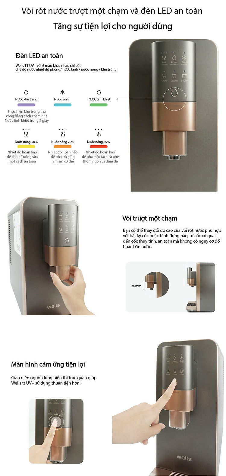 Với những ưu điểm nổi bật này, Wells TT UV+ không chỉ đảm bảo nguồn nước sạch mà còn nâng cao chất lượng cuộc sống hàng ngày của bạn.