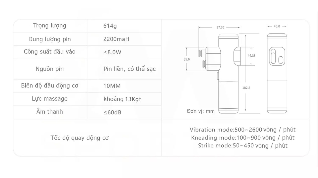 Phụ kiện đi kèm | ◉ 01 x Thân Máy◉ 01 x Hộp đựng◉ 01 x Cáp sạc Type-C◉ 06 x Đầu massage◉ 01 x Sách HDSD |