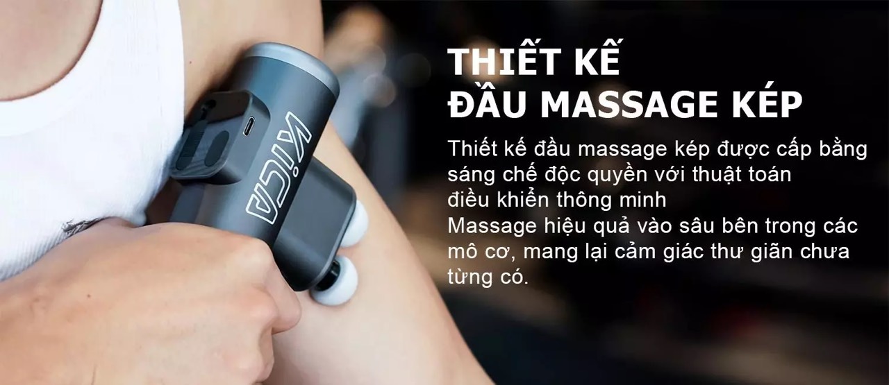 * Súng mát-xa mini hai đầu Kica 3, Súng mát-xa bộ gõ mô sâu biên độ 10 MM, Động cơ không chổi than siêu êm, Máy mát-xa cơ giảm đau với tốc độ trượt có thể điều chỉnh