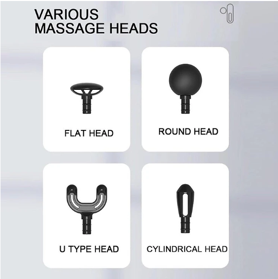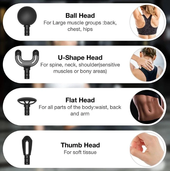 ĐẦU Massage CÓ THỂ THÁO RỜI: sản phẩm có sẵn 4 loại đầu Massage để đáp ứng nhu cầu của các cơ khác nhau. Đầu Massage có thể được tháo ra để dễ dàng lắp đặt và vệ sinh.