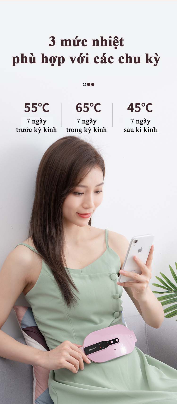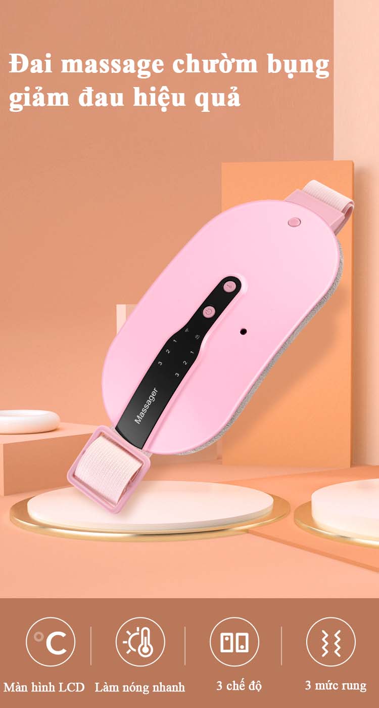 Máy Massage Bụng Kinh Làm Ấm Bụng Ba Mức Nhiệt Đa Năng Nhỏ Gọn Đai Chườm Bụng Giảm Đau Bụng Kinh Nguyệt Đau Lưng Ba Chế Độ Rung Làm Nóng Nhanh Túi Chườm Bụng Kinh Nóng Vải Nhung Mềm Mại Cao Cấp - ML034