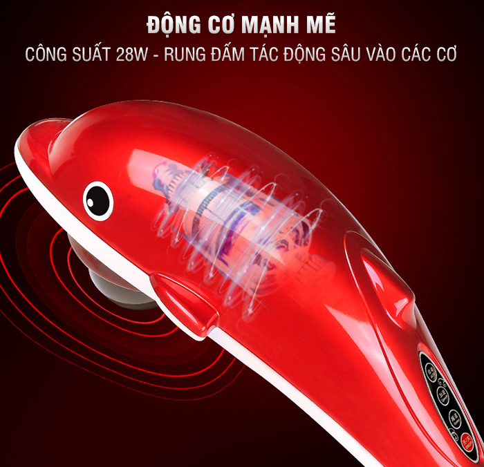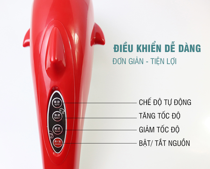 Máy Massage hình cá heo siêu dễ thương kết hợp màu xanh/đỏ/vàng sang trọng tạo nên sự thanh tao, nhã nhặn rất khác biệt so với những sản phẩm khác khi được bày bán trên cùng kệ hàng.