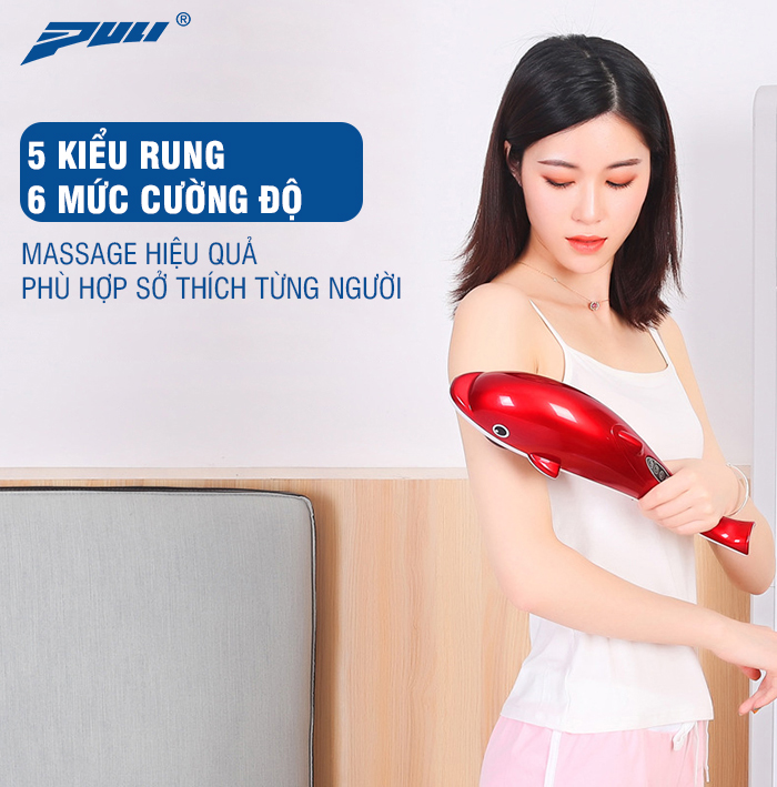 Máy Massage cầm tay cá heo PULI PL-608B có tính năng Massage đa dạng, đầu Massage phong phú nên hợp cho người mọi đối tượng từ người lớn tuổi, người lao động chân tay, sinh viên học sinh, dân văn phòng, người chơi thể thao…