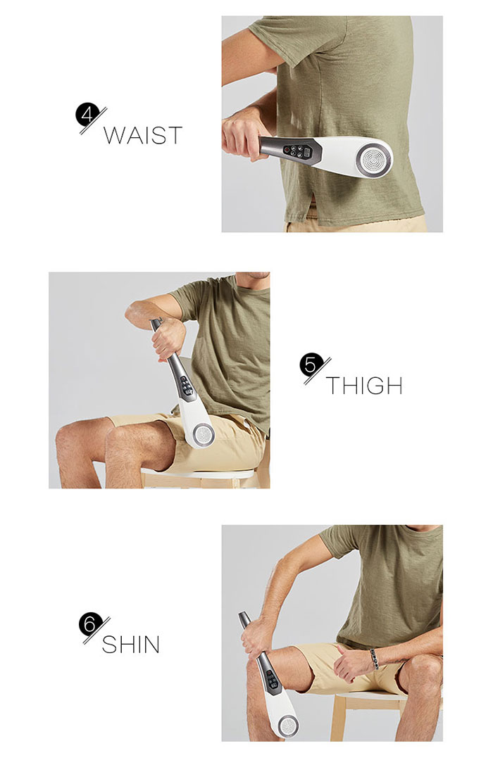 Được thiết kế theo dạng cầm tay tiện lợi cho người sử dụng, có thể được sử dụng tại các vị trí như vòng eo, cổ vai, cánh tay, hông, đùi và các vùng ở bắp chân. Sản phẩm giúp bạn dễ dàng Massage mọi vị trí trên cơ thể mà không cần người giúp.
