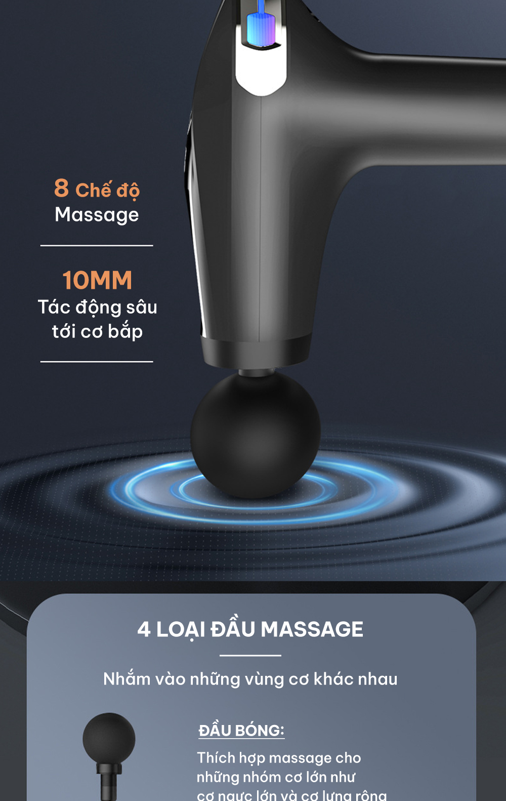 Đầu bóng: Thích hợp Massage cho những nhóm cơ lớn như cơ ngực lớn và cơ lưng rộng