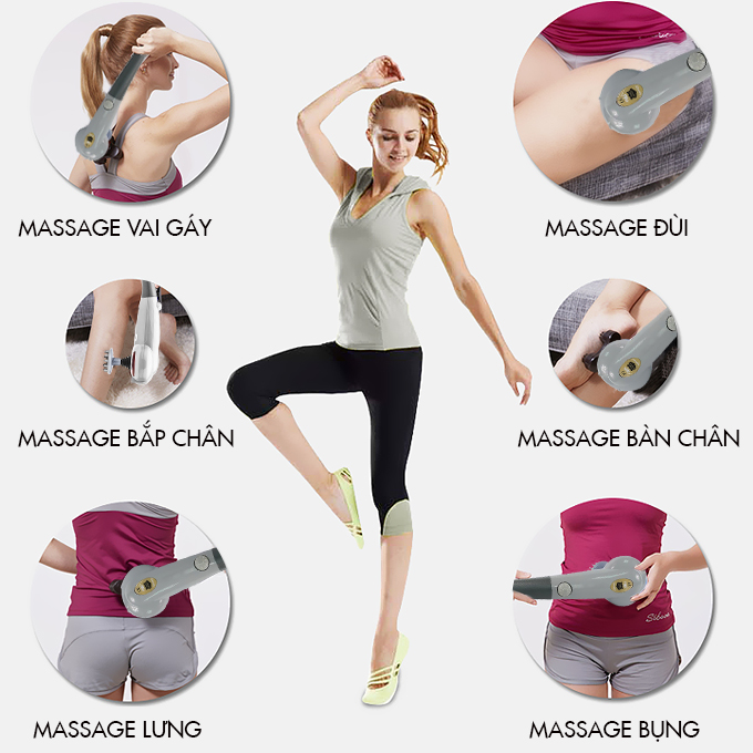 Tay cầm cán dài dễ dàng cho bạn di chuyển nhiều vị trí khó như lưng, cổ, vai, thắt lưng… Trọng lượng nhẹ vừa tay không gây cảm giác mỏi, giảm áp lực rung cho máy.