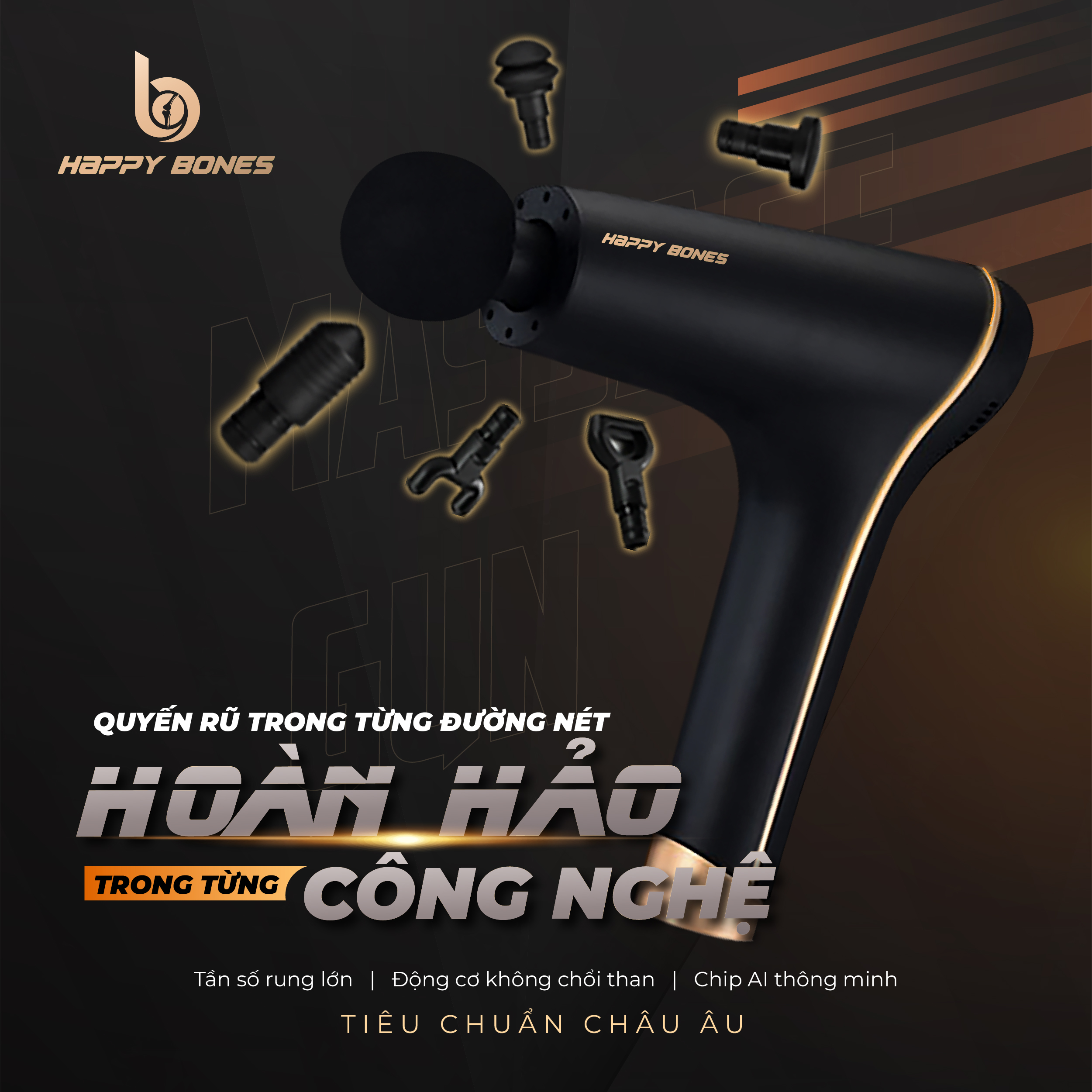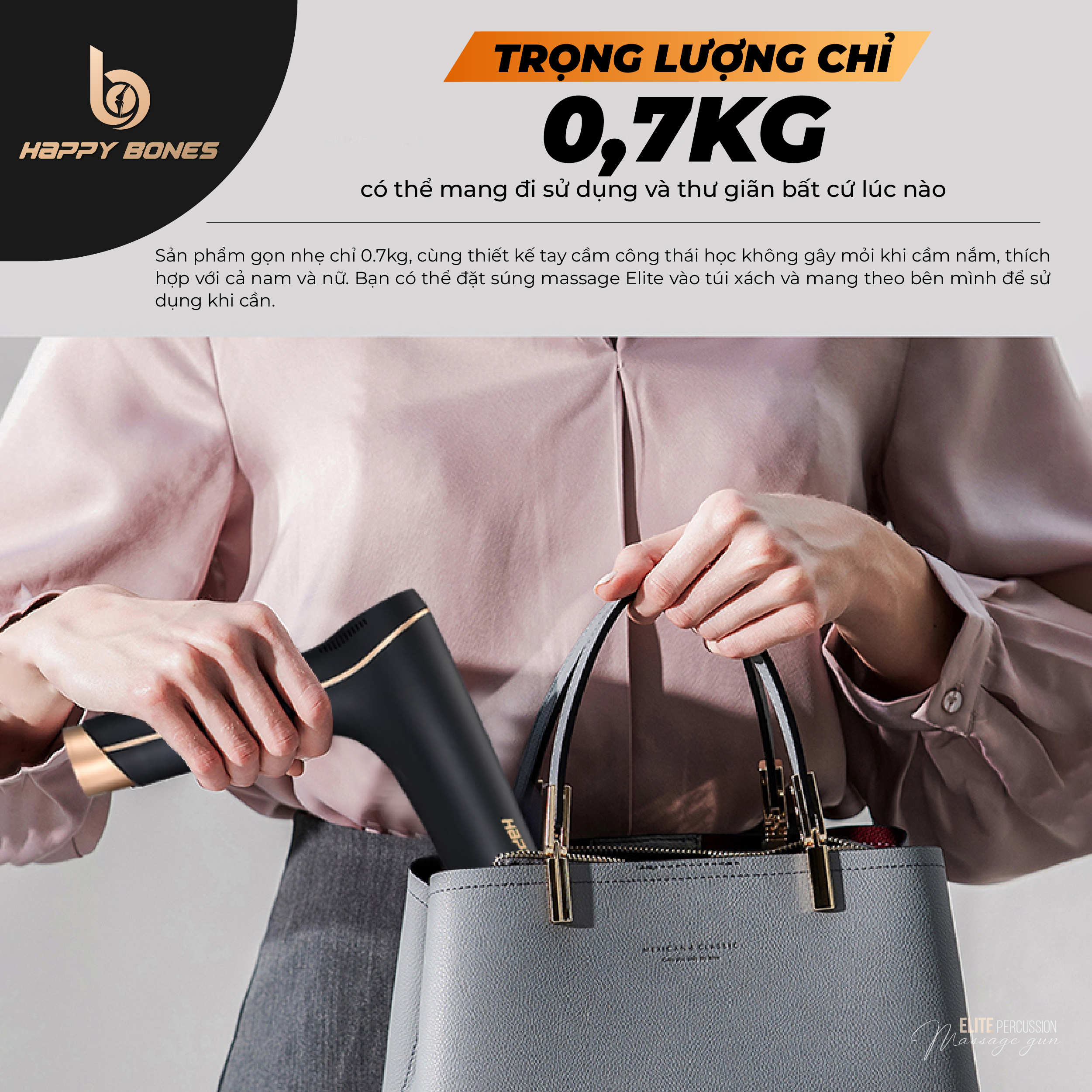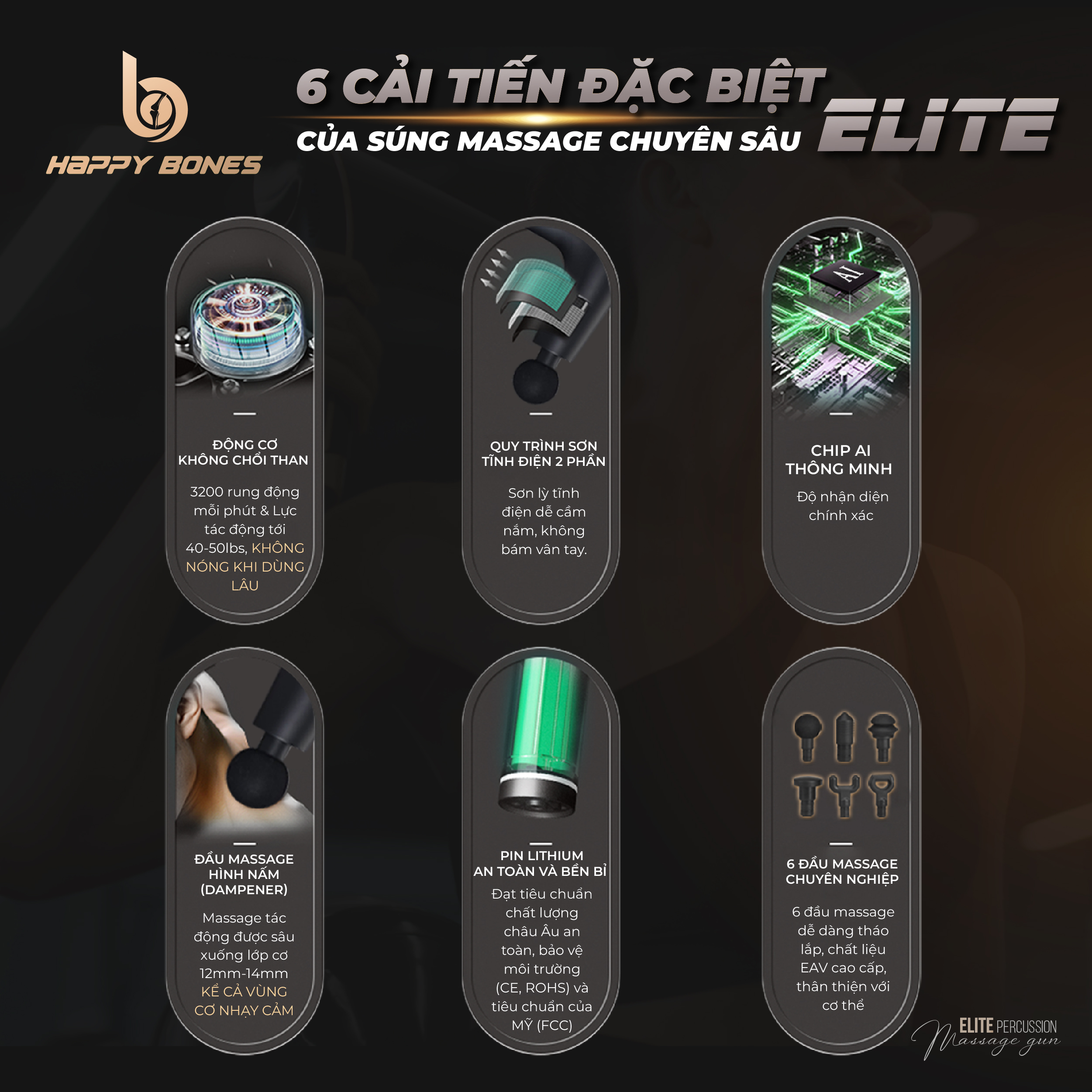 [MÁY Massage CẦM TAY HAPPY BONES ELITE PERCUSSION - SỰ LỰA CHỌN HÀNG ĐẦU CHO CÁC VĐV VÀ NGƯỜI CHƠI THỂ THAO CHUYÊN NGHIỆP]