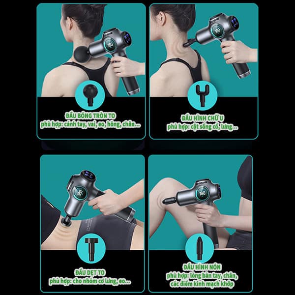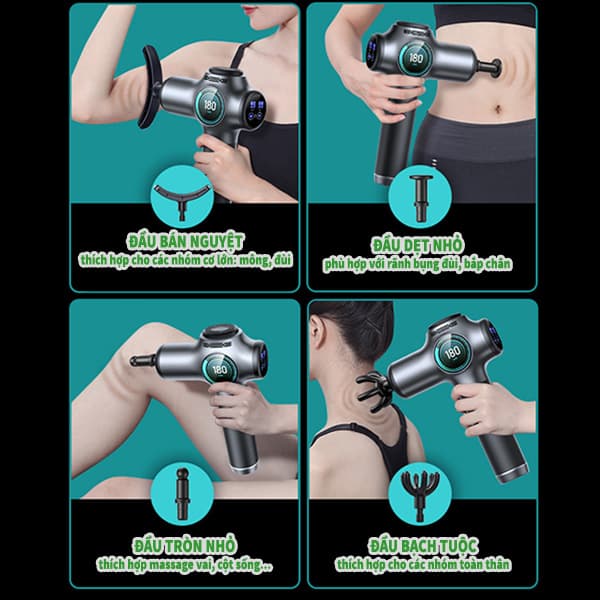 Máy Massage cầm tay Konka LF5 có sẵn 8 loại đầu Massage để đáp ứng nhu cầu của các nhóm cơ khác nhau. Đầu Massage có thể được tháo ra để dễ dàng lắp đặt và vệ sinh.