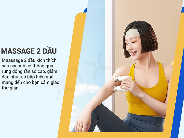 Máy sẽ có 2 đầu Massage sẽ thể kích thích sâu vào những mô cơ thông qua cơ chế rung tần số cao, giúp giảm đau nhức cơ bắp hiệu quả, mang tới cảm giác thoải mái, thư giãn ngay khi sử dụng. So với những đầu Massage đơn truyền thống thì đầu Massage đôi này có vùng Massage rộng hơn. Giúp nâng cao hiệu quả giảm đau tốt hơn cũng như rút ngắn thời gian Massage đi đáng kể. Bên cạnh đó, máy tích hợp hệ thống cảm ứng áp lực thông minh. Nên điều chỉnh điện áp theo áp suất bên ngoài để tùy chỉnh cường độ Massage tương ứng, để Massage sâu và mạnh mẽ hơn vào những khu vực bị đau nhức.Hơn nữa, máy trang bị thêm 3 đầu Massage để thay thế, làm bằng chất liệu silicone cao cấp nên có độ đàn hồi cao, thích hợp với những nhóm cơ, nhu cầu khác nhau của người dùng.