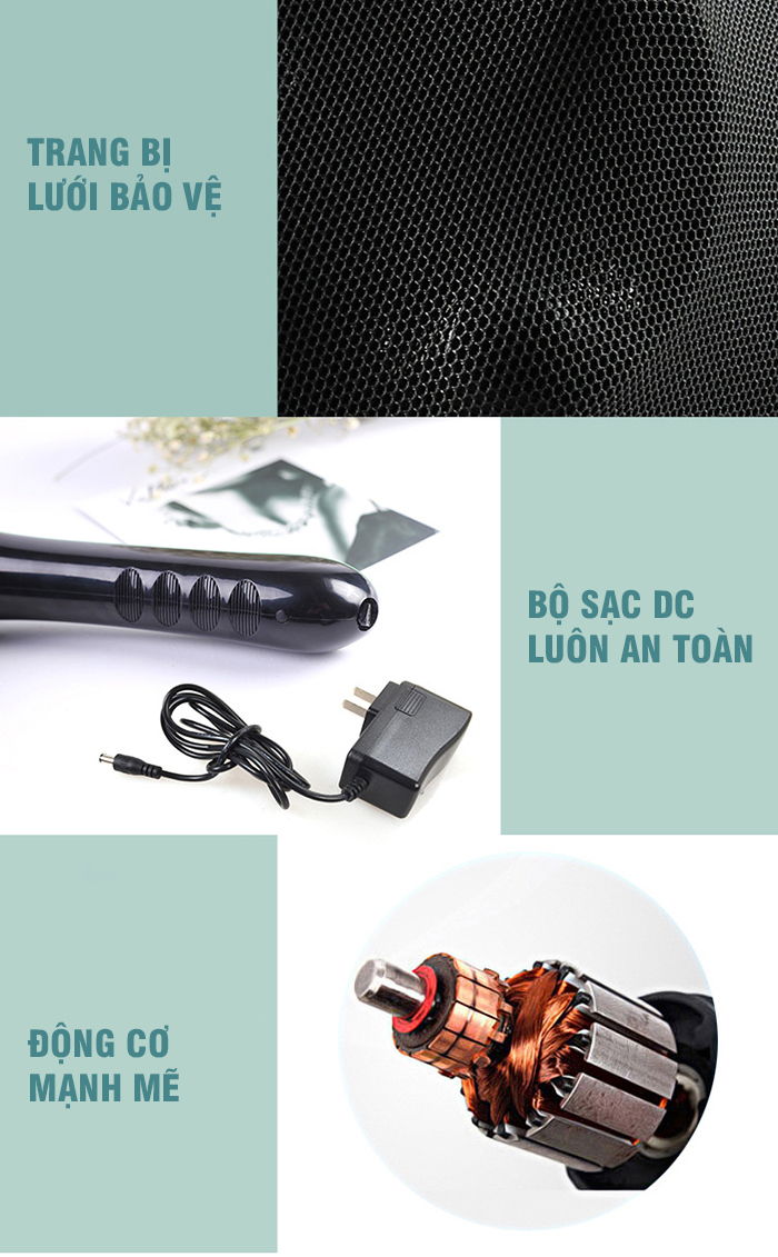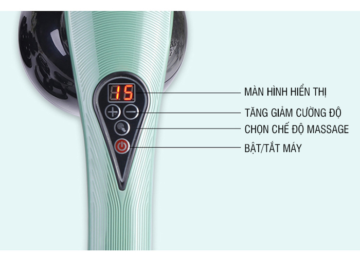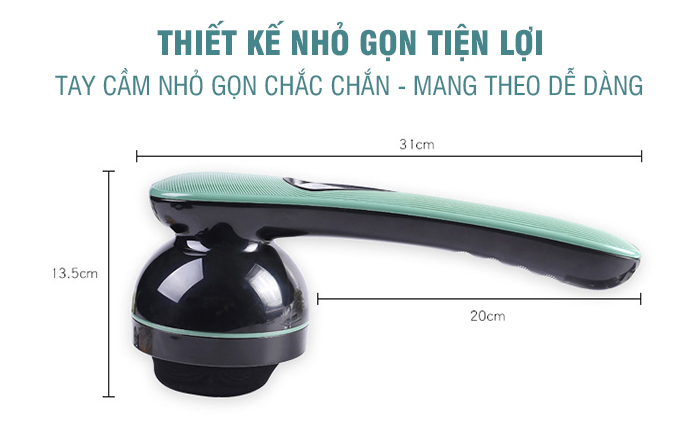 Sản phẩm có thiết kế tay cầm dài dễ cầm nắm, cán tay cầm nắm vừa lòng bàn tay, chắc chắn không lo trơn trượt tiện di chuyển trên cơ thể, tiếp xúc trực tiếp với những vị trí xa tại lưng dễ dàng. Máy Massage cầm tay được dùng để chăm sóc toàn bộ cơ thể: vai, cổ, gáy, lưng, eo, mông, đùi, cánh tay, chân…