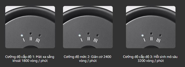 3 chế độ tốc độ và 3 đầu có thể thay thế * để đáp ứng các nhu cầu khác nhau của bạn Ba chế độ tốc độ 1.800 vòng / phút, 2.400 vòng / phút, 3.200 vòng / phút với ba đầu có thể thay thế có thể giúp bạn nhắm mục tiêu các bộ phận khác nhau của cơ thể, giảm đau cơ và giúp mở ra nhiều khả năng thể thao hơn.
