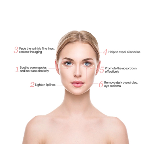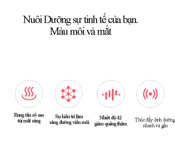 Mô tả: 1. 42 độ nhiệt độ không đổi, pha loãng mắt túi. 2. 360 độ Massage, cải thiện làn da các hạt chất béo. 3 & nbsp; Cao-Tần số rung, Massage, NẠO VÉT mắt lưu thông. 4. Làm giảm các dòng môi, áp dụng hot rung động, pha loãng môi dòng. 5. Elip đầu Massage, cả hai đẹp chăm sóc da. 6. Cuộc sống lâu dài, sử dụng liên tục 8 giờ.