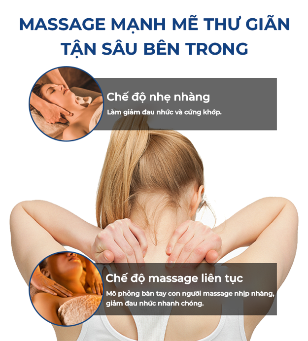 + Chế độ 2: Massage liên tục với cường độ mạnh mẽ làm giảm đau nhức nhanh chóng, thư giãn sau những giờ làm việc căng thẳng