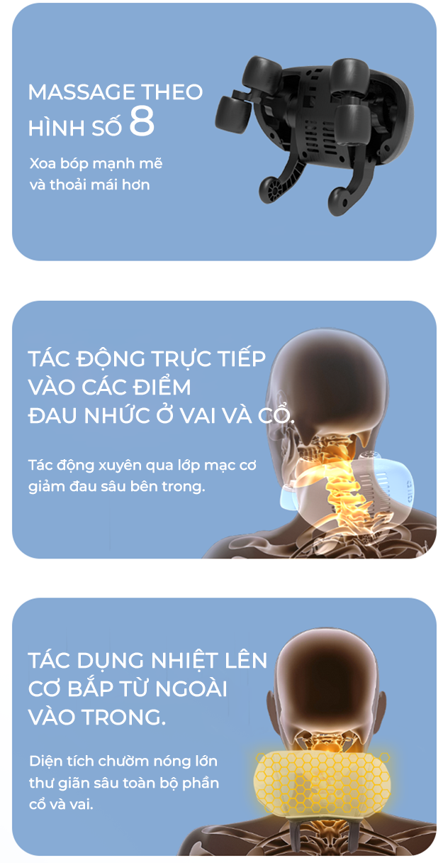 BẢO VỆ SỨC KHỎE CHO BẠN: Đánh thức sức sống vùng vai gáy với sự kết hợp hài hòa giữa Massage và chườm nóng trên diện rộng làm giảm đau nhức, mệt mỏi đưa cơ thể vào trạng thái thư giãn sâu