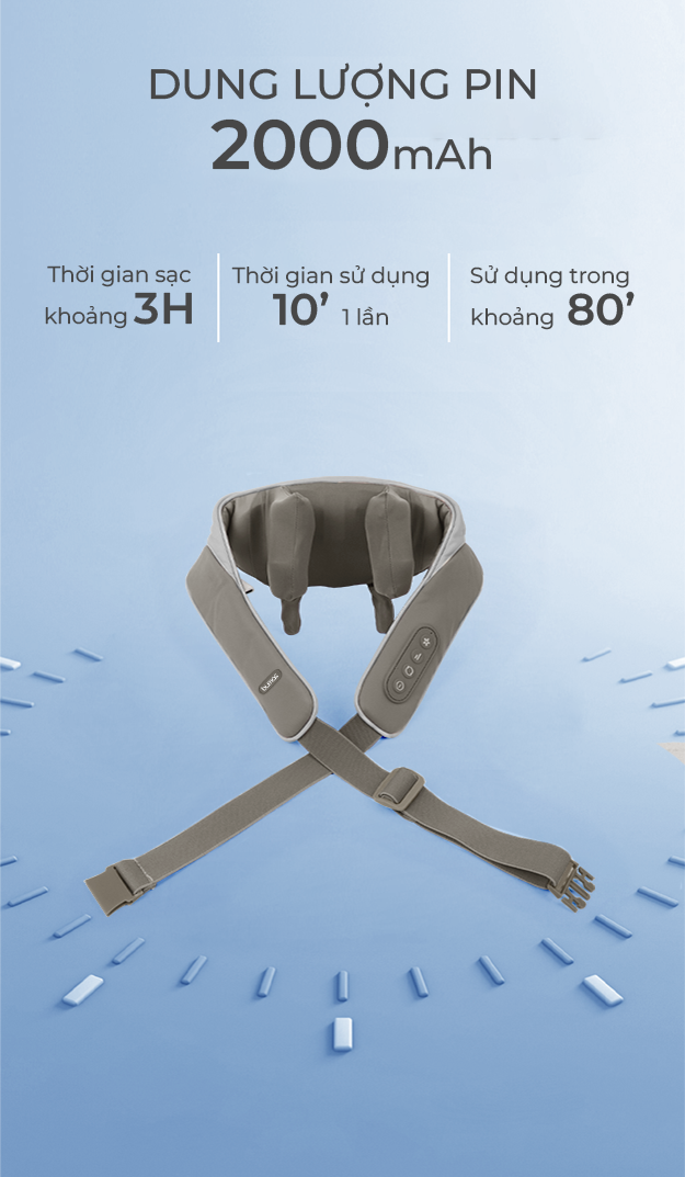 PIN LITHIUM DUNG LƯỢNG 2000MAH: Mỗi lần sử dụng khoảng 10 phút với tần suất 2-3 lần/ ngày để đảm bảo hỗ trợ tốt nhất cho sức khỏe thể chất lẫn tinh thần