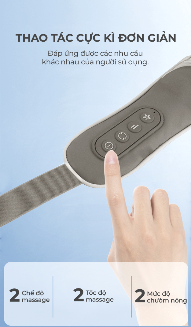 + Chế độ 1: Massage nhẹ nhàng với nhịp độ ổn định, thư giãn vai và cổ giảm đau nhức ở người già
