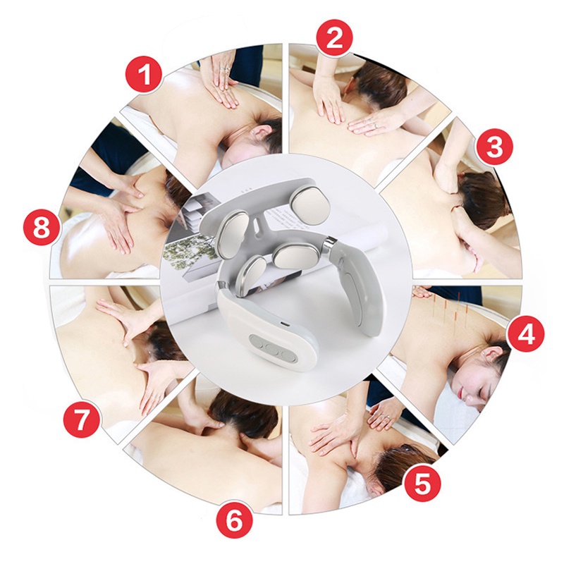 ĐẶC ĐIỂM NỔI BẬT ✔ Thiết kế hình chữ U độc đáo có thể kéo giãn, cho phép người dùng linh hoạt đeo vào cổ và sử dụng. ✔ Bố trí các miếng đệm cực kim loại thông minh cho khả năng thích ứng tốt với các đường cong ở vùng cổ của người dùng, cho quá trình Massage chính xác hơn ✔ Gia công từ vật liệu nhựa cao cấp với trọng lượng nhỏ, giúp bạn đeo nhẹ nhàng thoải mái. Các đệm cực được làm từ inox 304 cho khả năng dẫn nhiệt tốt ✔ Tích hợp chế độ xung điện EMS và công nghệ Massage TENS tiên tiến, dòng xung điện từ máy được truyền trực tiếp đến các cơ sâu bên trong cổ, vai kích thích các tế bào của cơ thể, giúp máu ở cổ lưu thông tốt hơn, giảm đau và cứng cơ cổ hiệu quả ✔ Khả năng làm ấm nhanh chóng, chỉ trong thời gian ngắn các miếng đệm cực sẽ ấm lên ở nhiệt độ ~42°C và không đổi trong suốt quá trình Massage ✔ Tích hợp nhiều chế độ Massage và nhiều cấp độ, cho phép người dùng tùy chọn chế độ và cường độ làm việc phù hợp
