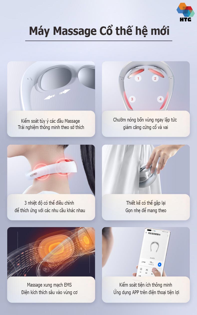 - Hỗ trợ 4 khu vực Massage cổ bao quanh toàn diện, giúp giải tỏa nhanh chóng các cơn đau mỏi