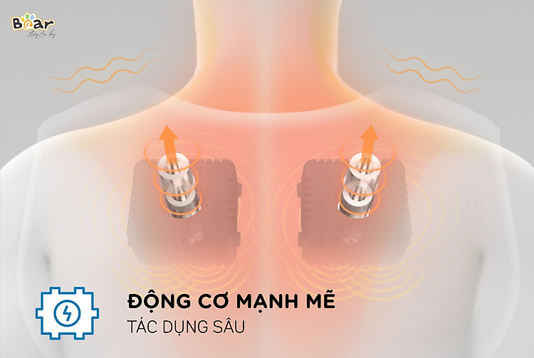 Cấu tạo động cơ máy đấm lưng Bear có 2 đầu tác động lực với công suất mạnh mẽ giúp tác động xoa bóp sâu, đồng thời thiết kế tích hợp 4 chế độ xoa bóp khác nhau đem lại cho bạn cảm giác thư thái dễ chịu nhất.