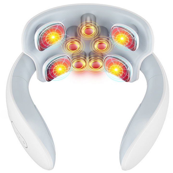 - Máy Massage đốt sống cổ tích hợp 4 đầu Massage và chức năng rung kết hợp chườm nóng 42˚ tác dụng kép giúp hạn chế căng thẳng đau mỏi cổ vai gáy giúp cơ thể thư giản sâu tăng tuần hoàn máu, kích thích huyệt đạo chăm sóc cột sống.