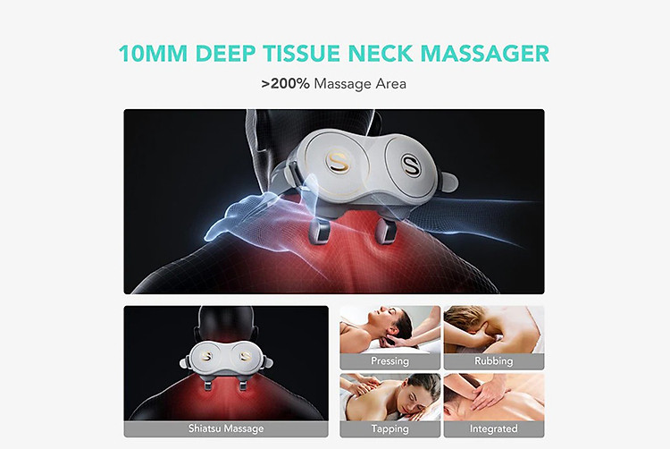 Tuy nhiên máy Massage cổ vai gáy SKG H7 tạo khác biệt hơn nhờ sở hữu 4 đầu Massage riêng biệt không chỉ giúp xoa bóp vùng cổ như các máy Massage cổ thông thường khác mà còn đồng thời hỗ trợ giảm đau hiệu quả vùng vai gáy. Với thiết kế tạo hình thang của các đầu Massage cho phép tăng diện tích Massage lên tới 200% giúp xóa tan nhanh những cơn đau nhức ở cả vùng cổ và vai gáy của bạn. Kết hợp cùng phương pháp Shiatsu, 4 đầu Massage của SKG H7 thực hiện các thao tác xoa bóp, đẩy, ấn…tạo cảm giác các ngón tay và lòng bàn tay đang Massage cho bạn cảm giác vô cùng chân thực.