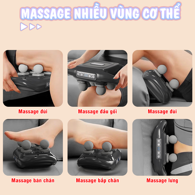 Massage được nhiều vị trí cơ thể: Lưng, chân, đùi, bắp tay bắp chân, cổ vai gáy, bụ