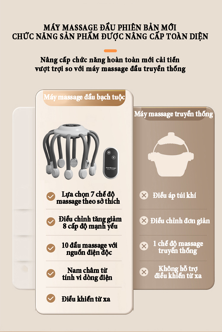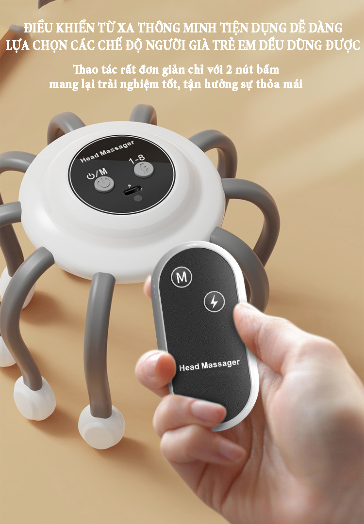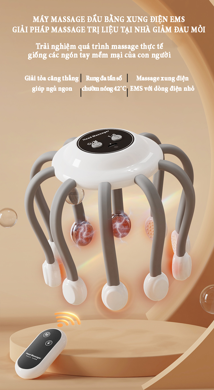 Giới thiệu Máy massage đầu bằng xung điện EMS có remoss điều khiển từ xa lựa chọn 7 chế độ hoạt động, 8 mức điều chỉnh tăng giảm, chức năng chườm nóng giải pháp massage trị liệu tại nhà