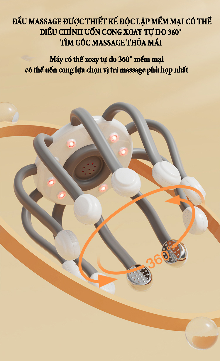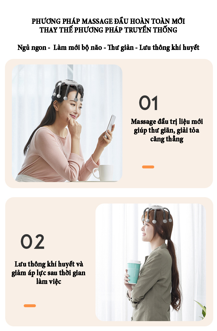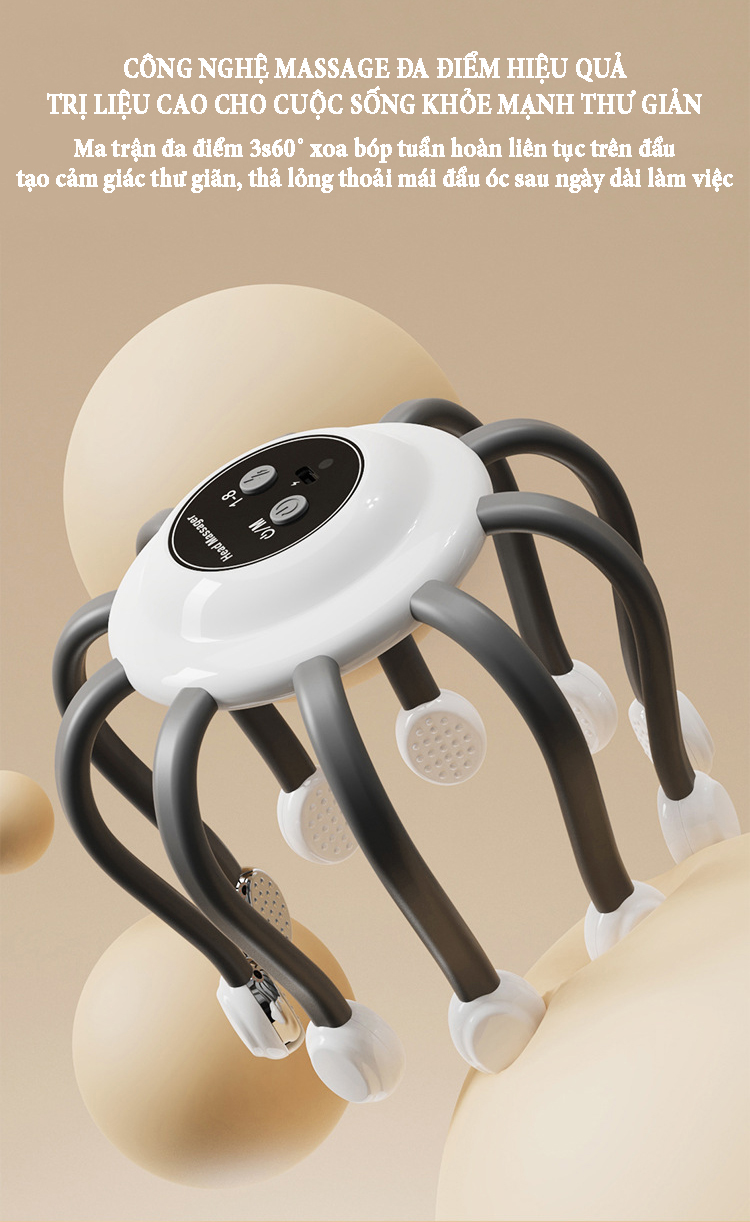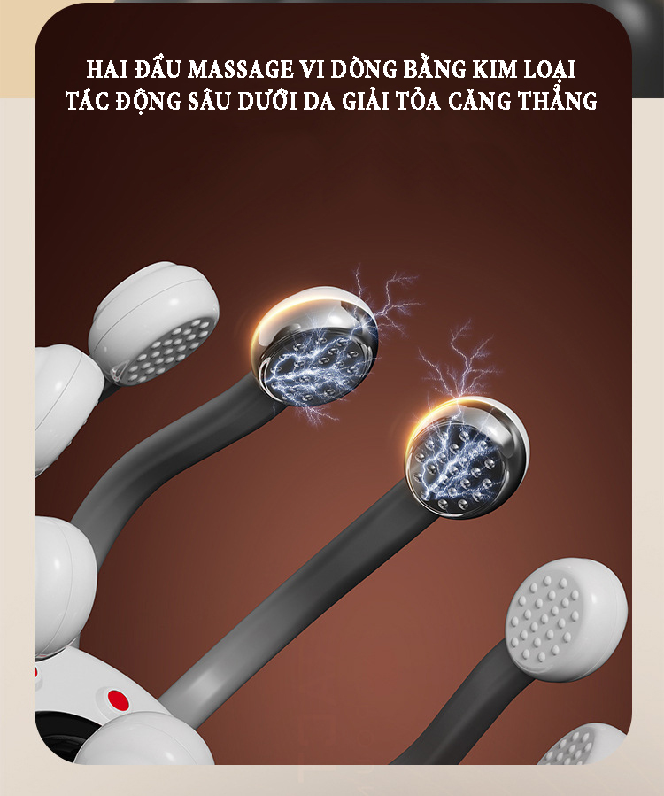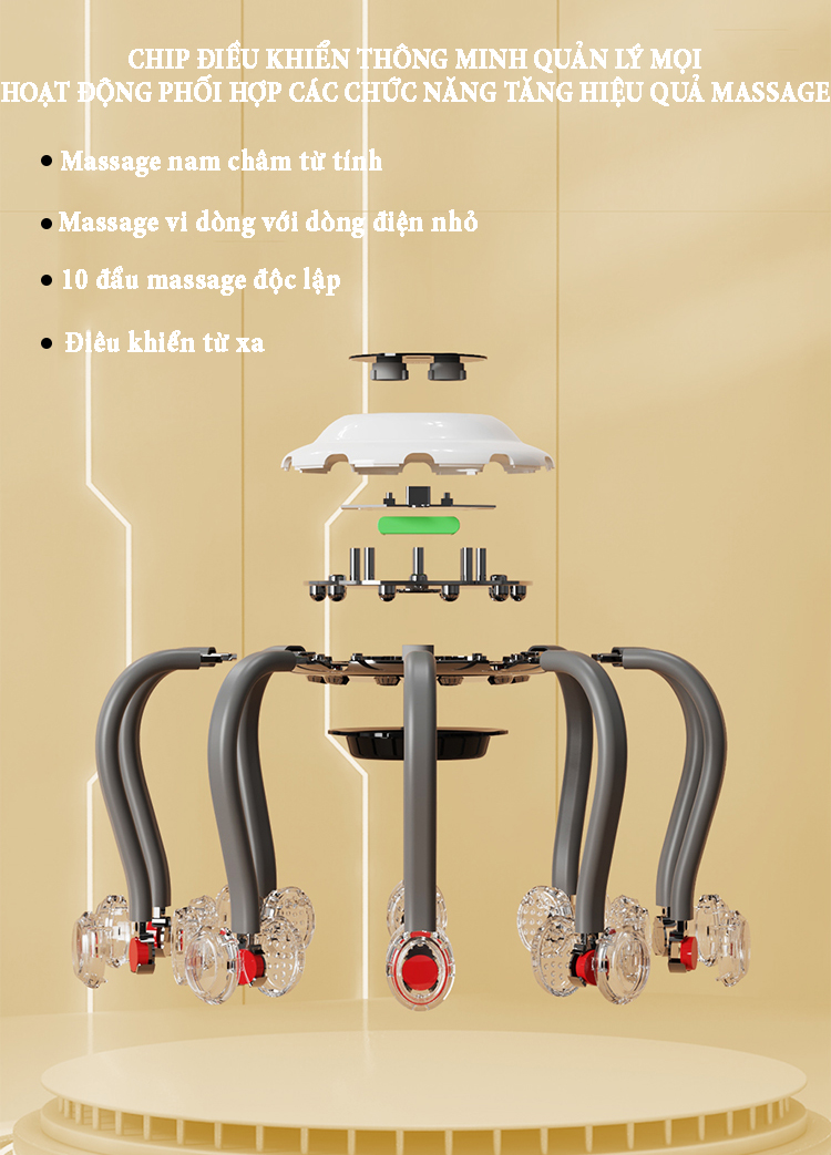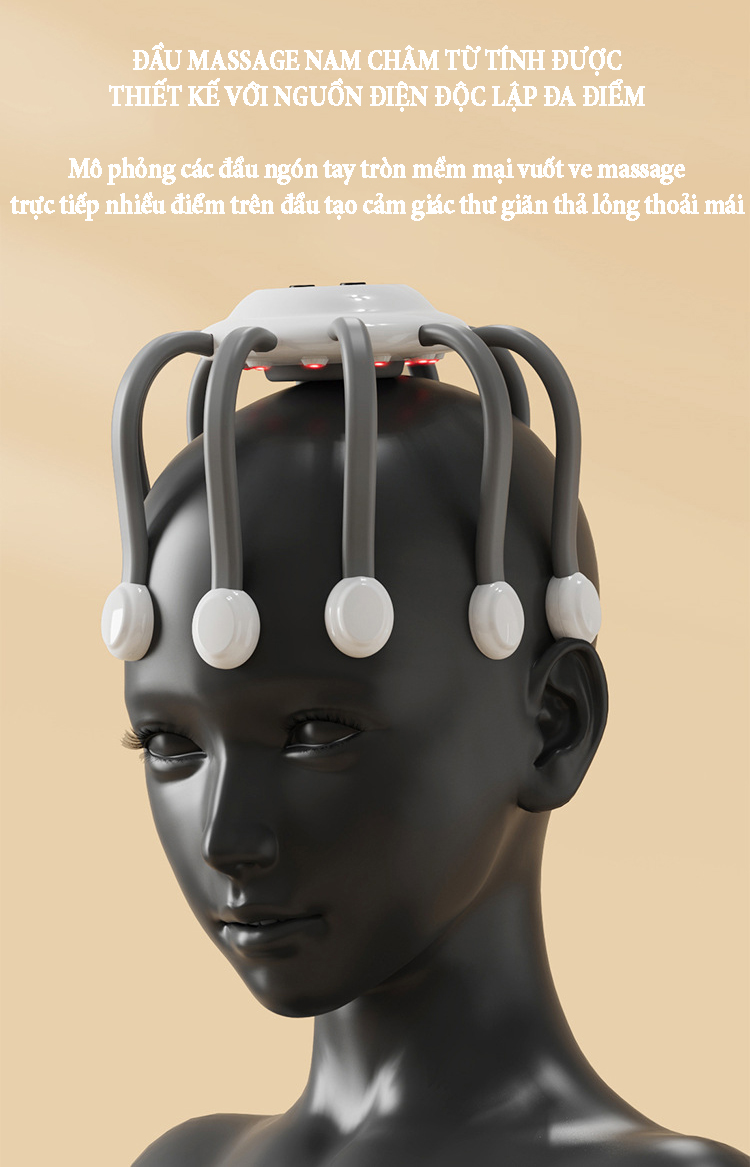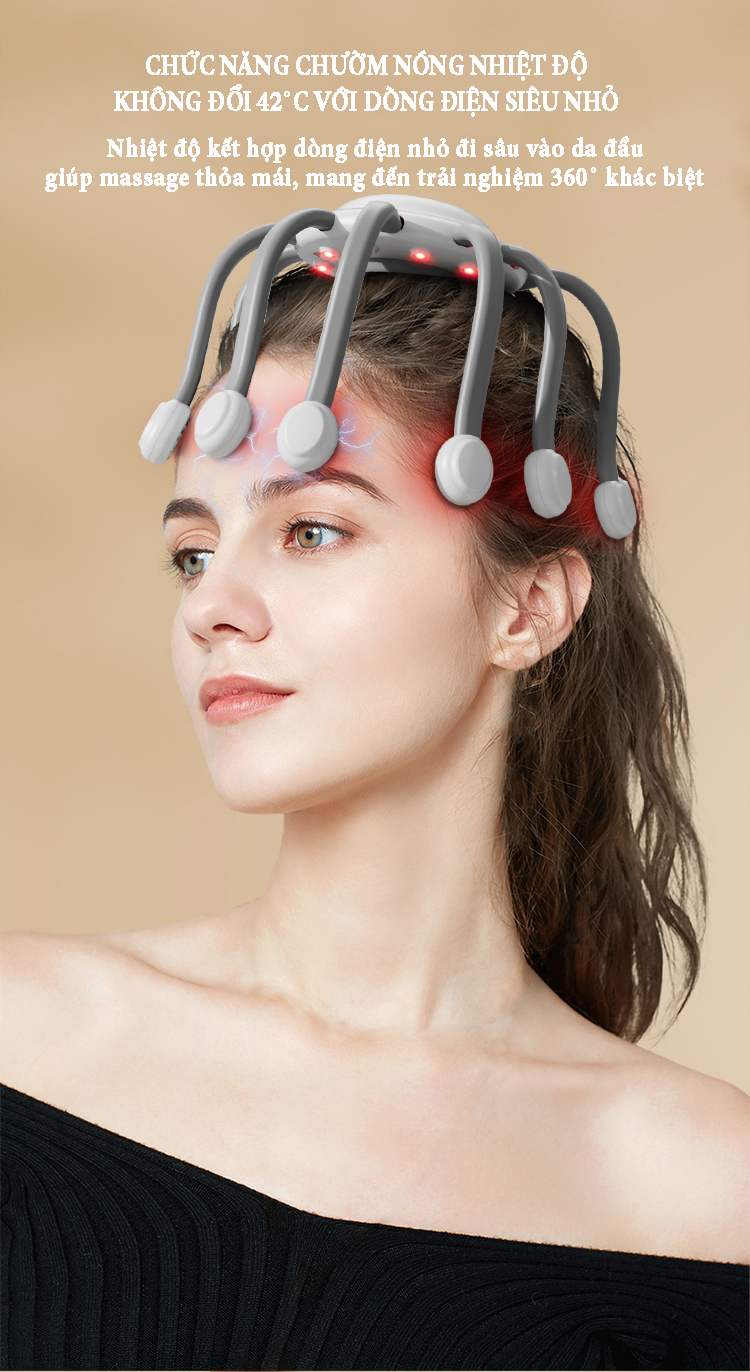 Máy massage đầu bằng xung điện EMS có 10 tiếp điểm bao quanh phạm vi 360˚ phương pháp massage trị liệu mới giúp thư giãn, giải tỏa căng thẳng lưu thông khí huyết và giảm áp lực sau thời gian làm việc...