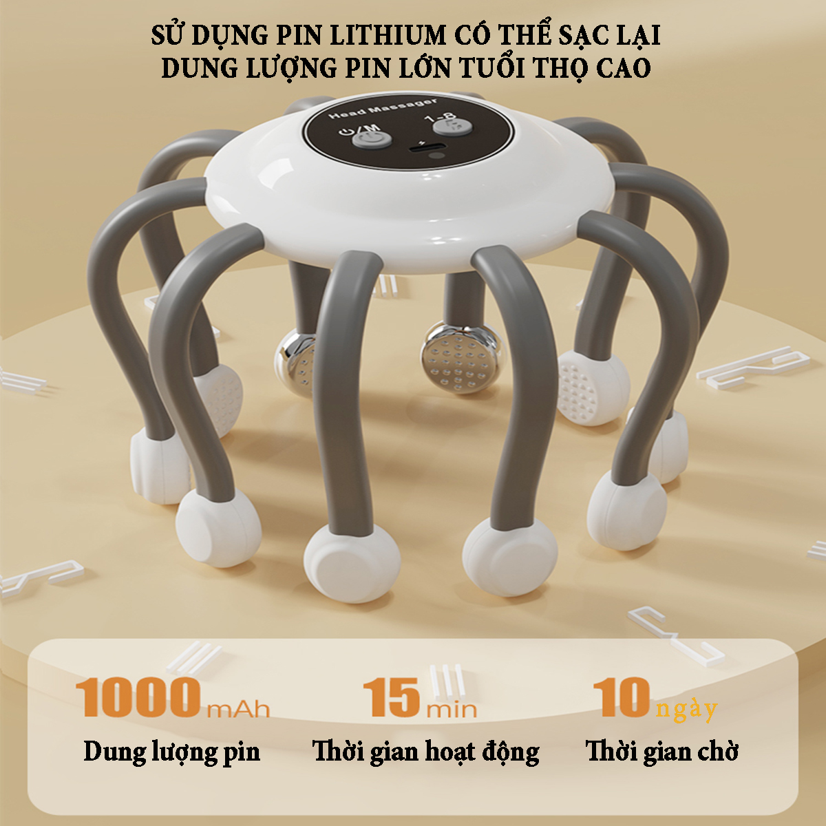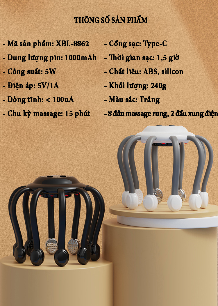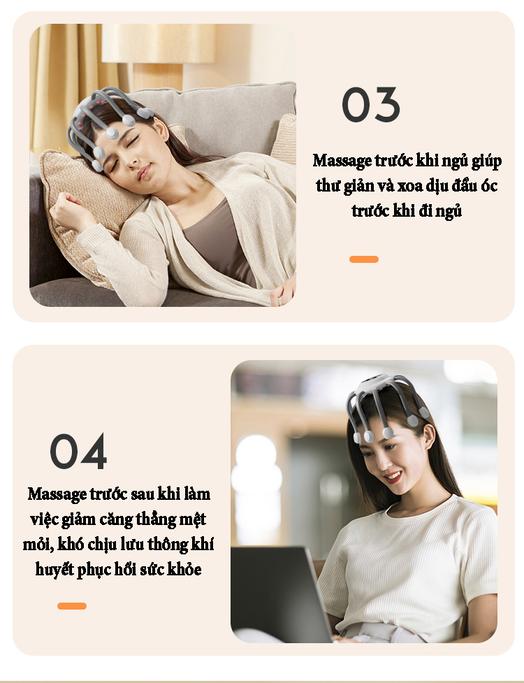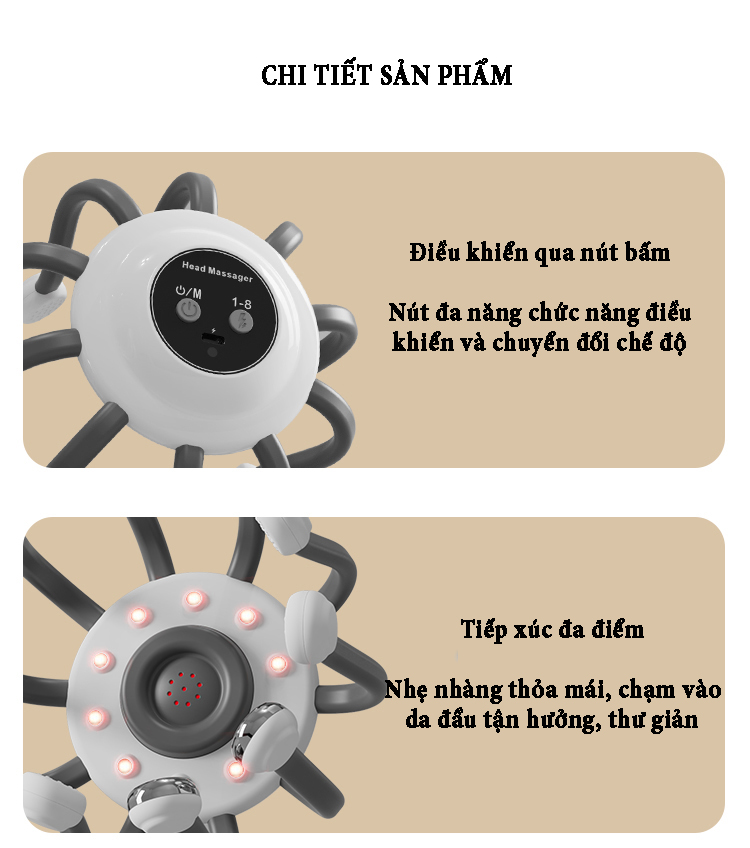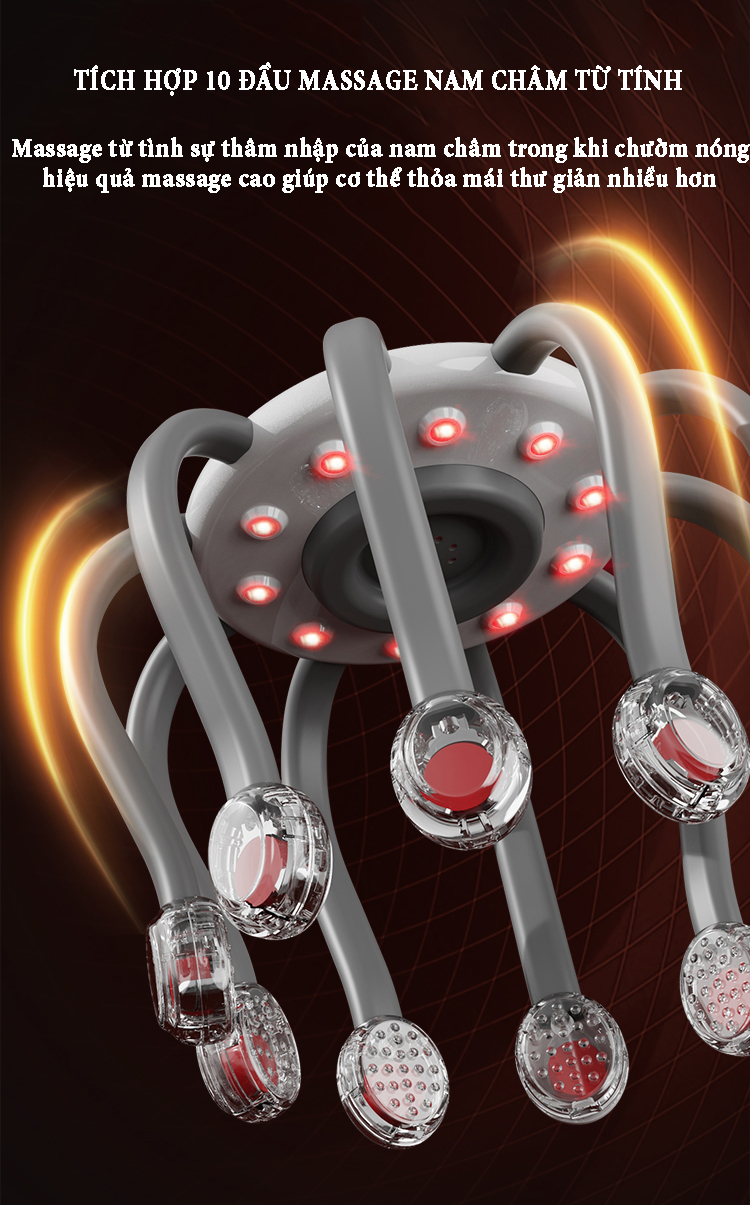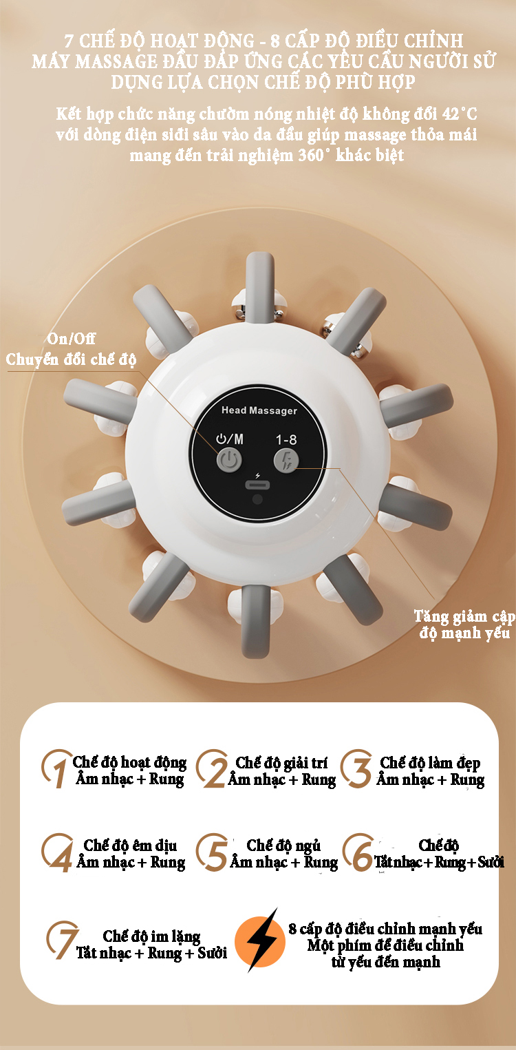 Máy massage đầu bằng xung điện EMS có 10 tiếp điểm bao quanh phạm vi 360˚ phương pháp massage trị liệu mới giúp thư giãn, giải tỏa căng thẳng lưu thông khí huyết và giảm áp lực sau thời gian làm việc...